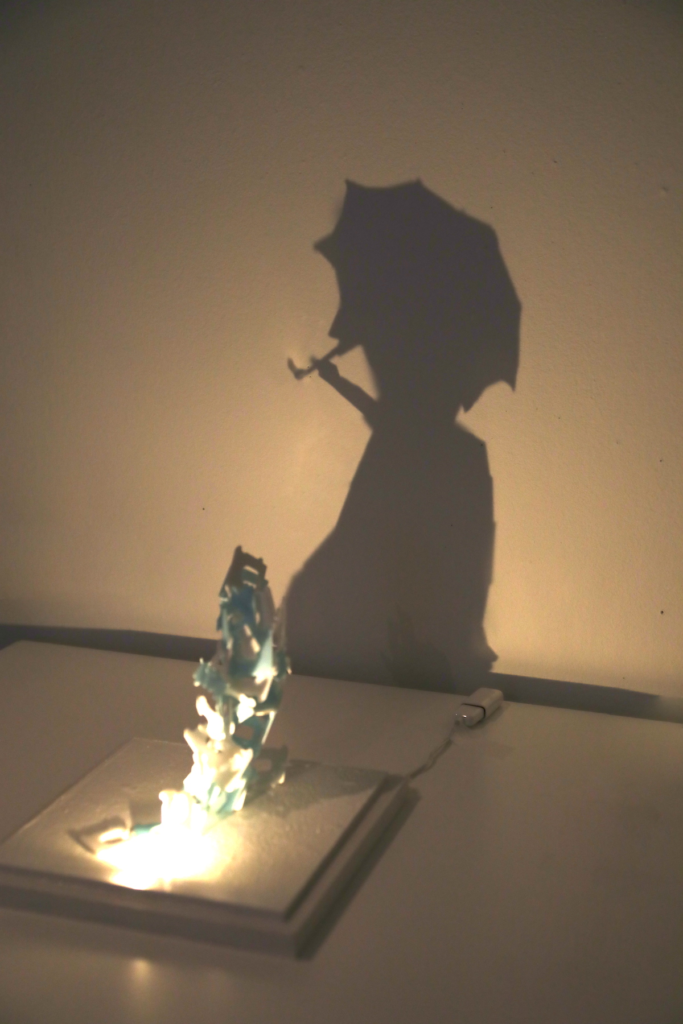 身の回りにあるモノを素材ごとに集め、そこから光を当てると浮かび上がる影アートを製作しました。